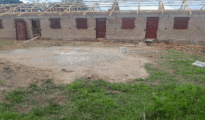 The three classrooms and one staffroom construction from foundation to roofing stage as per the reporting period.